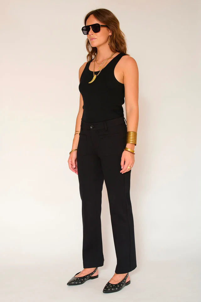 El pantalón Perside de MKT Studio combina elegancia y comodidad en una prenda clave de fondo de armario. Con un corte recto y ligeramente acampanado, aporta un aire sofisticado y atemporal a cualquier look. Su diseño con bolsillos frontales de estilo utilitario y talle medio favorece la silueta y lo convierte en un pantalón versátil y funcional para el día a día.