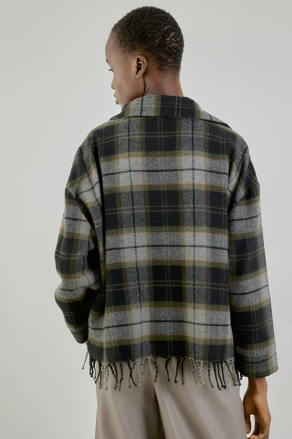 El corte es ligeramente holgado, perfecto para llevar como sobrecamisa o chaqueta ligera, y el acabado con flecos en el bajo añade movimiento y un estilo boho muy característico. Una prenda versátil, pensada para elevar cualquier look diario sin renunciar a la comodidad.