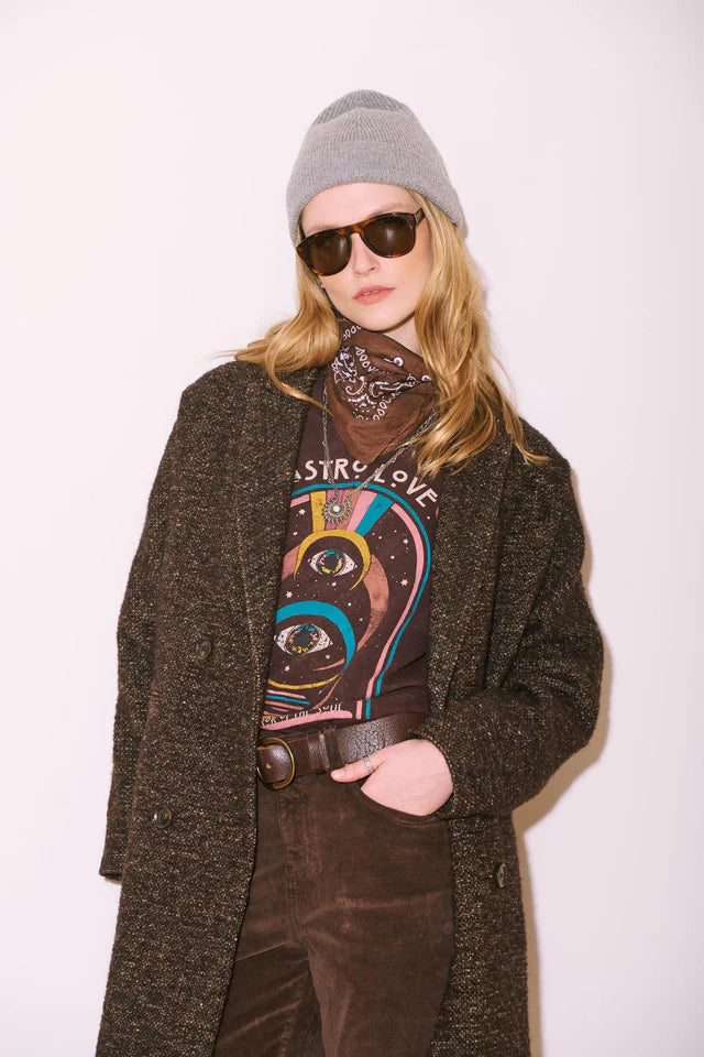 Su corte recto y relajado aporta comodidad y versatilidad, mientras que el acabado desgastado le da ese aire effortless y rockero que define la esencia de la marca. Perfecta para llevar con jeans, pantalones de pana o incluso bajo un blazer oversize para un contraste urbano y actual.